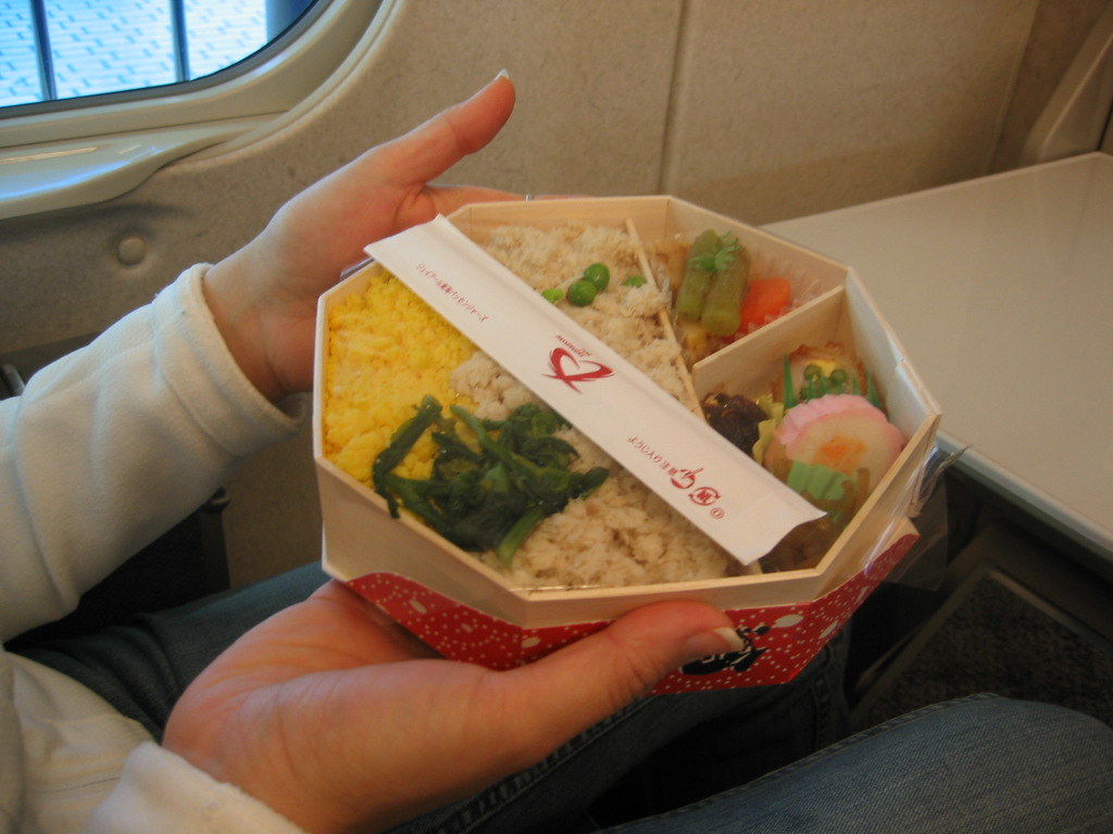 “Japan-Tokyo-to-Kyoto-Shinkansen-Bullet-Train-Bento-Box-Lunch-April-2004” by tiarescott is licensed under CC BY 2.0.